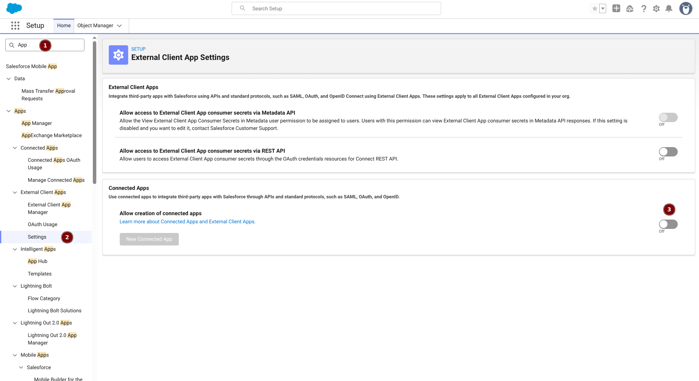 打开off 进行New Connected App