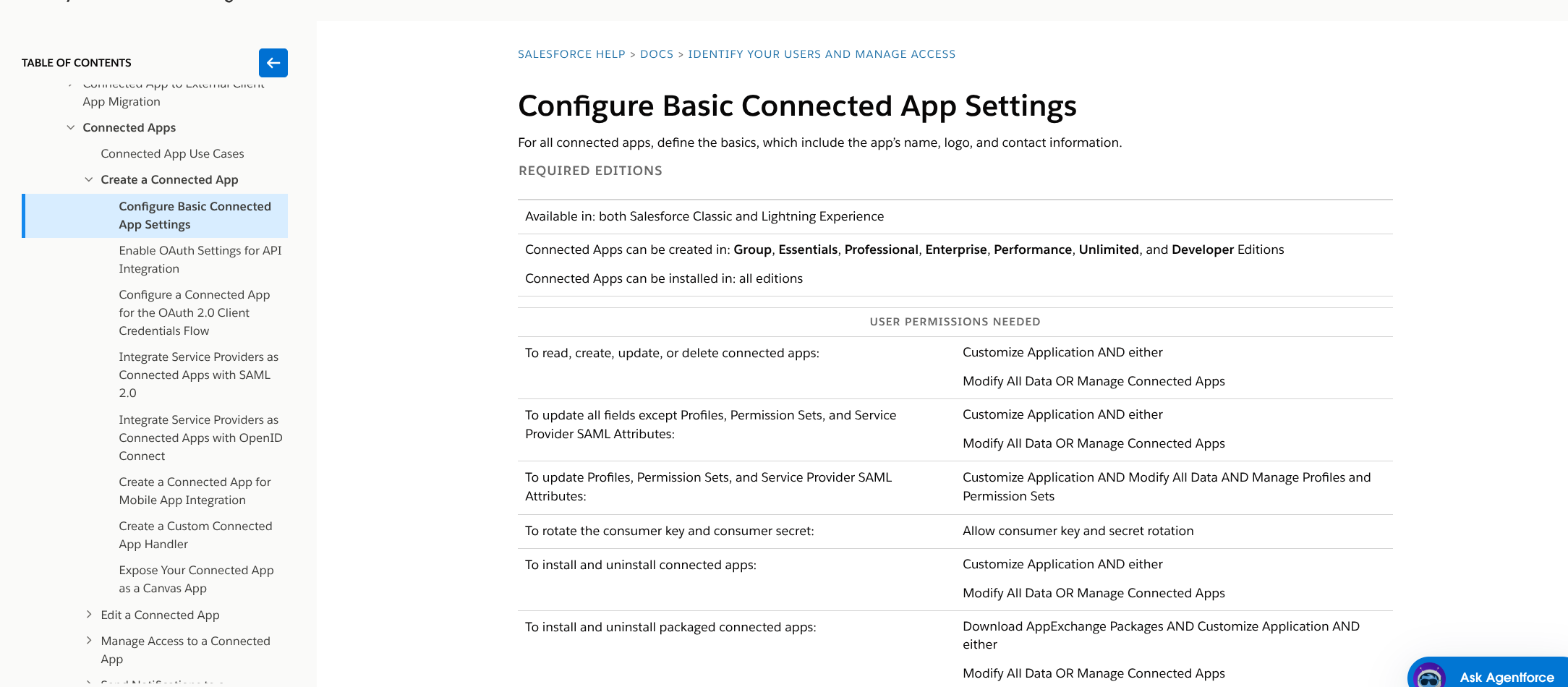 Configure Basic Connected App Settings