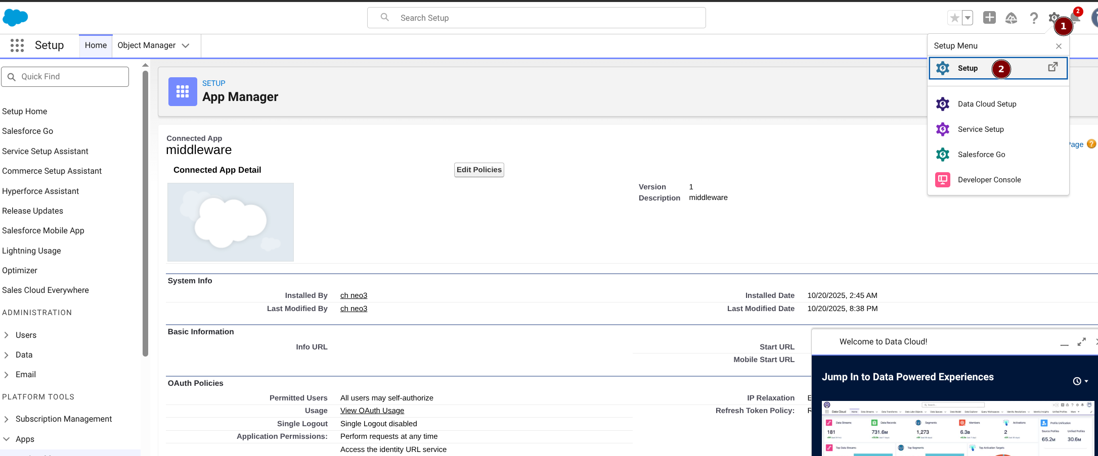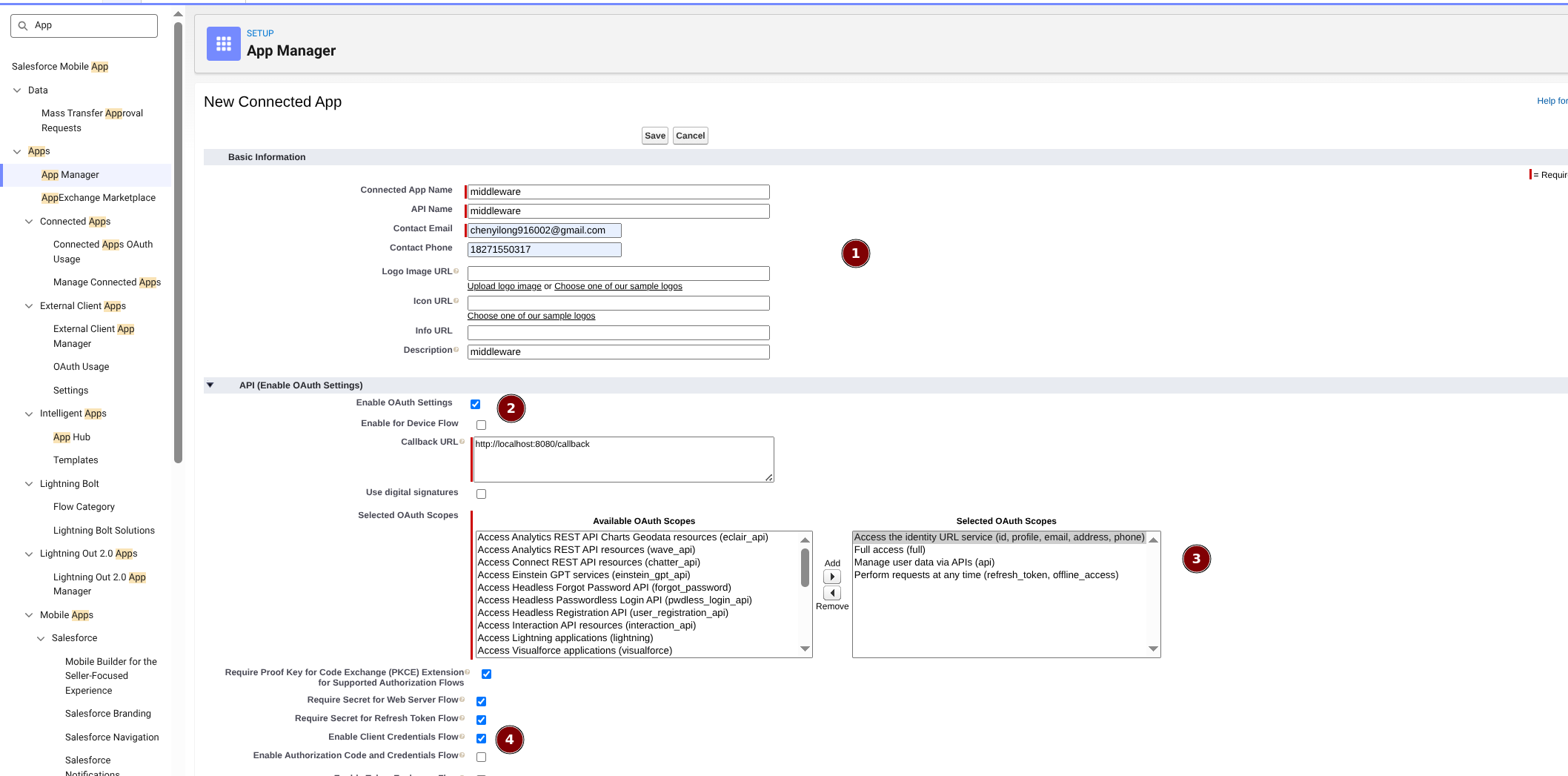 需求是个人或者公司的中间服务对接Salesforce, 就需要进行Connected App, 是非常关键的一步